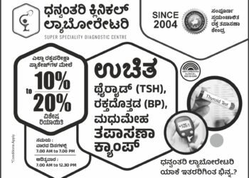ಧನ್ವಂತರಿ ಕ್ಲಿನಿಕಲ್ ಲ್ಯಾಬೋರೇಟರಿಯ ಬೆಳ್ಳಾರೆ ಶಾಖೆಯಲ್ಲಿ ಏ. 11ರಂದು ಮಧುಮೇಹ, ಥೈರಾಯ್ಡ್, ರಕ್ತದೊತ್ತಡ…