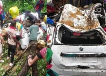 ಉಪ್ಪಿನಂಗಡಿ: ಚಲಿಸುತ್ತಿದ್ದ ಕಾರಿನ ಮೇಲೆ ಬೃಹತ್ ಗಾತ್ರದ ಮರ ಬಿದ್ದು ಮಗು ಸೇರಿದಂತೆ ನಾಲ್ವರು ಗಾಯಗೊಂಡ ಘಟನೆ ರವಿವಾರ ಸುಬ್ರಹ್ಮಣ್ಯ – ಉಡುಪಿ ರಾಜ್ಯ ಹೆದ್ದಾರಿಯ ಕಡಬ ತಾಲೂಕಿನ ನೂಜಿಬಾಳ್ತಿಲದಲ್ಲಿ ಸಂಭವಿಸಿದೆ.