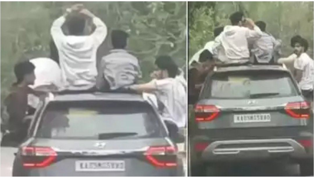 ಚಲಿಸುತ್ತಿದ್ದ ಕಾರಿನಲ್ಲಿದ್ದ 7 ಜನರಲ್ಲಿ 6 ಮಂದಿ ಅಪಾಯಕಾರಿ ಸ್ಟಂಟ್ ಮಾಡಿದ್ದರು. ಈ ಯುವಕರ ದುಸ್ಸಾಹಸದ ವಿಡೀಯೋ ಸಾಮಾಜಿಕ ಜಾಲತಾಣದಲ್ಲಿ ವೈರಲ್ ಆಗಿತ್ತು. ಈ ವಿಡಿಯೋದಲ್ಲಿ ಇಬ್ಬರು ಯುವಕರು ವೇಗವಾಗಿ ಚಲಿಸುತ್ತಿರುವ ಕಾರಿನ ಸನ್ರೂಫ್ನಿಂದ ಹೊರಗೆ ನಿಂತಿದ್ದರೆ, ಇಬ್ಬರು ಹಿಂಬದಿಯ ಬಾಗಿಲುಗಳಿಂದ ಹೊರಗೆ ನೇತಾಡುತ್ತಿರುವುದು ಕಾಣಬಹುದು. ಪ್ರಯಾಣಿಕರ ಕಂಡುಬರುತ್ತದೆ. ಮತ್ತಿಬ್ಬರು ಯುವಕರು ಮುಂಭಾಗದ ಬಾಗಿಲುಗಳಿಂದ ಹೊರಬರುತ್ತಿರುವುದು