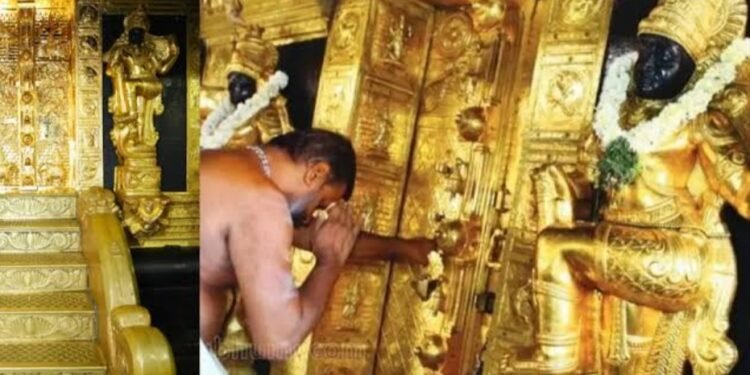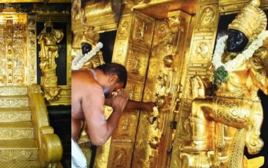 2019 ರಲ್ಲಿ ದ್ವಾರಪಾಲಕ ವಿಗ್ರಹಗಳು ಮತ್ತು ಶ್ರೀಕೋವಿಲ್ ಬಾಗಿಲಿನ ಚೌಕಟ್ಟುಗಳಿಂದ ಚಿನ್ನದ ಹೊದಿಕೆಯ ತಾಮ್ರದ ತಟ್ಟೆಗಳನ್ನು ಎಲೆಕ್ಟೋಪ್ಲೇಟಿಂಗ್ಗಾಗಿ ಪಾಟಿಗೆ ಹಸ್ತಾಂತರಿಸುವಲ್ಲಿ ತಿರುವಾಂಕೂರು ದೇವಸ್ವಂ ಮಂಡಳಿ (ಟಿಡಿಬಿ) ಸದಸ್ಯರು ಮತ್ತು ಅಧಿಕಾರಿಗಳ ಪಾತ್ರವನ್ನು ಅಧಿಕಾರಿಗಳು ಪರಿಶೀಲಿಸುತ್ತಿದ್ದಾರೆ.