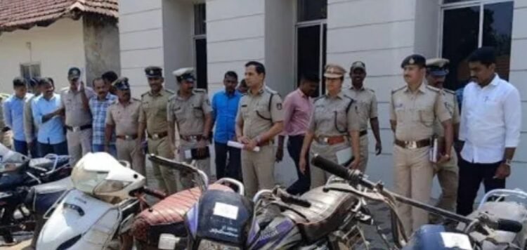 ಮಂಗಳೂರು : ಜಾತ್ರೆ, ಕಂಬಳೋತ್ಸವ, ಬಸ್, ರೈಲ್ವೇ ನಿಲ್ದಾಣಗಳಲ್ಲಿ ನಿಲ್ಲಿಸಿದ್ದ ಬೈಕ್, ದ್ವಿಚಕ್ರ ವಾಹನಗಳನ್ನು ಕದ್ದು ಮಾರಾಟ ಮಾಡುತ್ತಿದ್ದ ಶಿವಮೊಗ್ಗ ಮೂಲದ, ಮೂಡುಬಿದ್ರೆಯಲ್ಲಿ ಗ್ಯಾರೇಜ್ ನಲ್ಲಿ ಕೆಲಸ ಮಾಡಿಕೊಂಡಿದ್ದ ಪ್ರಮುಖ ಆರೋಪಿ ಮಣಿಕಂಠ ಗೌಡ ಕೆ. (24) ಸೇರಿ ನಾಲ್ವರನ್ನು ಕಂಕನಾಡಿ ನಗರ ಠಾಣೆ ಪೊಲೀಸರು ಬಂಧಿಸಿದ್ದಾರೆ.