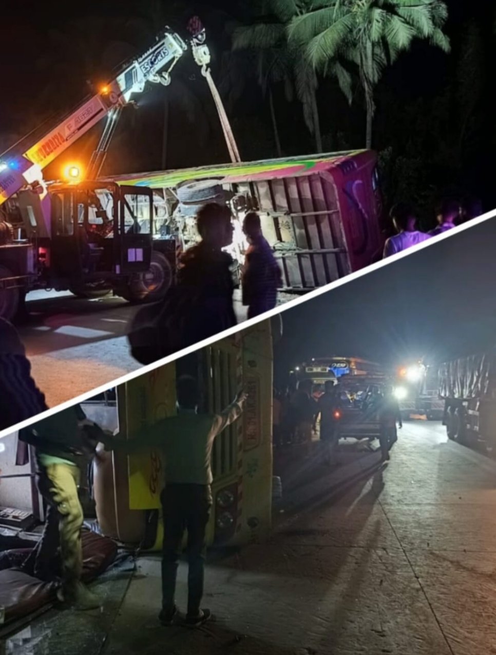 ಬೆಂಗಳೂರಿನಿಂದ ಮಂಗಳೂರಿಗೆ ಬರುತ್ತಿದ್ದ ಬಸ್ ಪಲ್ಟಿ