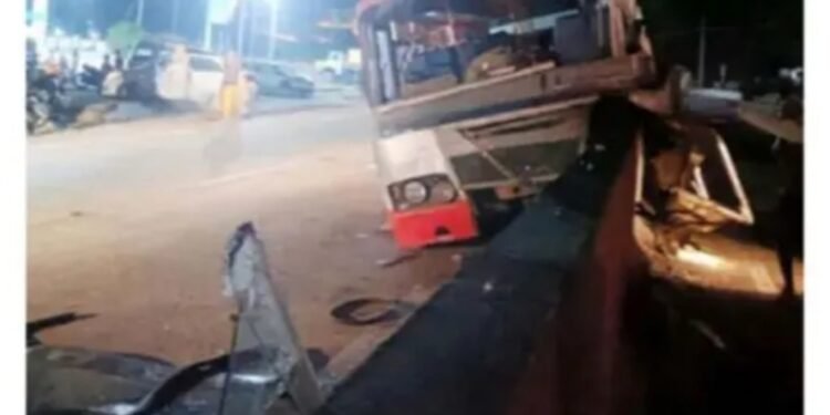 ಬಸ್ಸಿನ ಟಯರ್ ಸ್ಪೋಟಗೊಂಡ ಪರಿಣಾಮ ಚಾಲಕನ ನಿಯಂತ್ರಣ ತಪ್ಪಿದ ಬಸ್ಸು ಡಿವೈಡರ್ಗೆ ಡಿಕ್ಕಿಯಾಗಿದೆ ಎಂದು ಹೇಳಲಾಗಿದೆ.