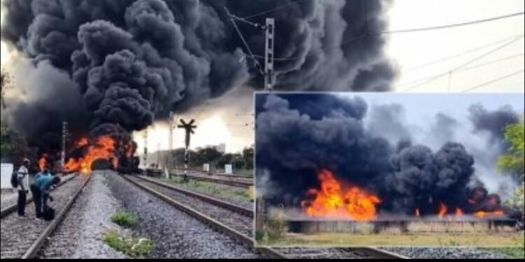 ಡೀಸೆಲ್ ಸಾಗಿಸುತ್ತಿದ್ದ ಗೂಡ್ಸ್ ರೈಲೊಂದು ನಿಲ್ದಾಣದ ಬಳಿಯೇ ಬೆಂಕಿಗಾಹುತಿಯಾದ ಘಟನೆ ತಮಿಳುನಾಡಿನ ತಿರುವಳ್ಳೂರಿನಲ್ಲಿ ಸಂಭವಿಸಿದೆ.