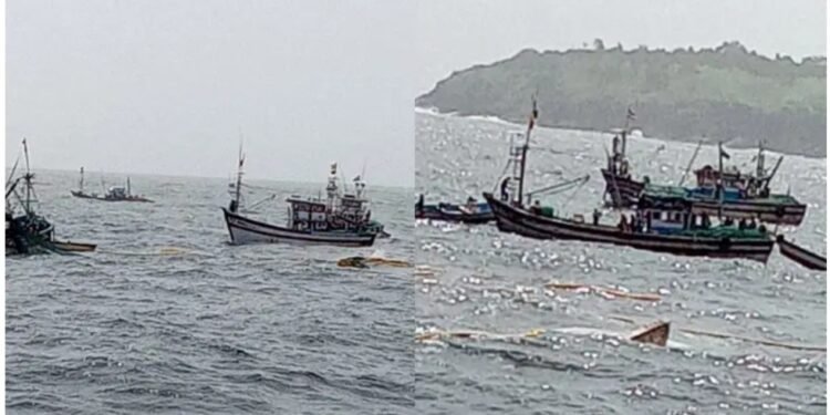 ಕಾರವಾರ: ಅರಬ್ಬಿ ಸಮುದ್ರದಲ್ಲಿ ಮೀನುಗಾರಿಕೆಗೆ ತೆರಳಿದ್ದ ಪರ್ಷಿಯನ್ ಬೋಟ್ ಅಲೆಗಳ ಹೊಡೆತಕ್ಕೆ ಭಟ್ಕಳ ತಾಲೂಕಿನ ನೇತ್ರಾಣಿ ಬಳಿ ಮುಳುಗಿದೆ. . ಬೋಟ್ ನಲ್ಲಿದ್ದ 25 ಜನ ಮೀನುಗಾರರನ್ನು ಸ್ಥಳೀಯ ಮೀನುಗಾರರು ರಕ್ಷಣೆ ಮಾಡಿದ್ದಾರೆ.