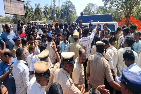 ಮಂಗಳೂರು: ನಗರದ ನಂತೂರು ಪ್ರದೇಶದಲ್ಲಿ ದ್ವಿಚಕ್ರ ವಾಹನಕ್ಕೆ ಖಾಸಗಿ ಬಸ್ ಢಿಕ್ಕಿಯಾಗಿ ಸಹಸವಾರೆ ಮೃತಪಟ್ಟ ಪ್ರಕರಣಕ್ಕೆ ಸಂಬಂಧಿಸಿದಂತೆ ಯುವತಿ ಸಾವಿಗೆ ನ್ಯಾಯ ಒದಗಿಸುವಂತೆ ಸ್ಥಳೀಯರು ಗುರುವಾರ ಕದ್ರಿ ಪೊಲೀಸ್ ಠಾಣೆಯ ಮುಂಭಾಗದಲ್ಲಿ ಪ್ರತಿಭಟನೆ ನಡೆಸುತ್ತಿದ್ದಾರೆ.