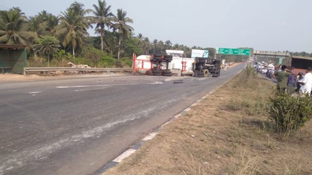 ಮಂಗಳೂರಿನಿಂದ ಉಡುಪಿ ಕಡೆಗೆ ಸಂಚರಿಸುತ್ತಿದ್ದ ಗ್ಯಾಸ್ ಟ್ಯಾಂಕರ್ ಒಂದು ಸೋಮವಾರ ಬೆಳಿಗ್ಗೆ ಕಟಪಾಡಿ ಬಳಿ ನಿಯಂತ್ರಣ ತಪ್ಪಿ ಪಲ್ಟಿಯಾಗಿದೆ. ಟ್ಯಾಂಕರ್ನಿಂದ ಅನಿಲ ಸೋರಿಕೆಯಾಗುತ್ತಿದೆ ಎಂಬ ವರದಿಯಾದ ಹಿನ್ನೆಲೆ ಸ್ಥಳೀಯರಲ್ಲಿ ಆತಂಕ ಸೃಷ್ಟಿಸಿದೆ.