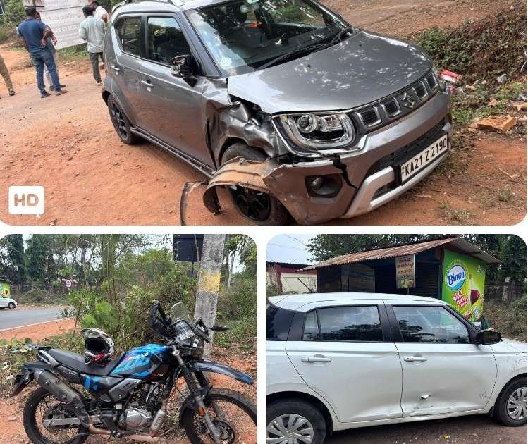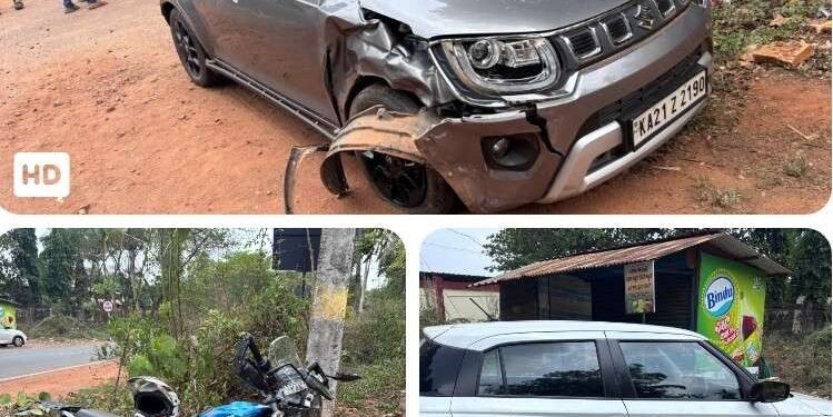 ಪುತ್ತೂರಿನಿಂದ ಸುಳ್ಯ ಕಡೆಗೆ ಸಾಗುತ್ತಿದ್ದ ಬೈಕ್ ಹಾಗೂ ಸುಳ್ಯದಿಂದ ಪುತ್ತೂರು ಕಡೆಗೆ ಬರುತ್ತಿದ್ದ ಕಾರುಗಳ ನಡುವೆ ಈ ಅಪಘಾತ ಸಂಭವಿಸಿದೆ. ಅಪಘಾತದ ರಭಸಕ್ಕೆ ಕಾರುಗಳಿಗೆ ಹಾನಿಯಾಗಿದೆ.