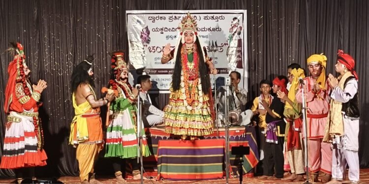 ಪುತ್ತೂರು: ದ್ವಾರಕಾ ಪ್ರತಿಷ್ಠಾನ, ತುಮಕೂರು ಯಕ್ಷದೀವಿಗೆ ಪ್ರಸ್ತುತಿಯಲ್ಲಿ ನಾಳೆಗೂ ಉಳಿಯಲಿ ನೆಲ – ಜಲ ಧ್ಯೇಯವಾಕ್ಯದ ಚಂದ್ರಮಂಡಲ ಚರಿತೆ ಯಕ್ಷಗಾನ ಮಾ. 30ರಂದು ಸಂಜೆ ಕಿಲ್ಲೆ ಮೈದಾನ ಬಳಿಯ ಚಿಣ್ಣರ ಪಾರ್ಕಿನಲ್ಲಿ ಪ್ರಸ್ತುತಿಗೊಂಡಿತು.ಪ್ರಾರಂಭದಲ್ಲಿ ದ್ವಾರಕಾ ಸಮೂಹ ಸಂಸ್ಥೆಗಳ ವ್ಯವಸ್ಥಾಪಕ ನಿರ್ದೇಶಕ ಗೋಪಾಲಕೃಷ್ಣ ಭಟ್ ಅಧ್ಯಕ್ಷತೆಯಲ್ಲಿ ಸಭಾ ಕಾರ್ಯಕ್ರಮ ನಡೆಯಿತು. ನಗರಸಭೆ ಉಪಾಧ್ಯಕ್ಷ ಬಾಲಚಂದ್ರ ಕೆಮ್ಮಿಂಜೆ, ಸ್ಥಾಯಿ ಸಮಿತಿ ಅಧ್ಯಕ್ಷ ಸುಂದರ ಪೂಜಾರಿ ಬಡಾವು ಉಪಸ್ಥಿತರಿದ್ದರು.