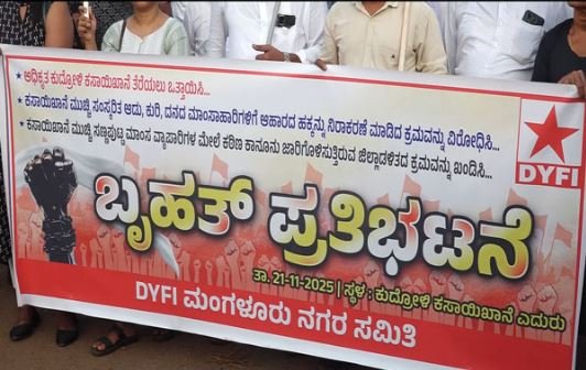 ಡಿವೈಎಫ್ಐ ಜಿಲ್ಲಾಧ್ಯಕ್ಷ ಬಿ.ಕೆ ಇಮ್ತಿಯಾಝ್ ಮಾತನಾಡಿ, ದ.ಕ.ಜಿಲ್ಲಾಡಳಿತ ಸಂಘ ಪರಿವಾರದ ನಿಯಂತ್ರಣದಲ್ಲಿದೆಯಾ ಎಂಬ ಅನುಮಾನ ಕಾಡುತ್ತಿದೆ. ಜಿಲ್ಲೆಯ ಮಾಂಸಹಾರಿಗಳಿಗೆ ಸಂಸ್ಕರಿತ ಮಾಂಸ ಸರಬರಾಜು ಆಗಬೇಕಾದ ಅಧಿಕೃತ ಕಸಾಯಿಖಾನೆಯನ್ನು ಮುಚ್ಚಿರುವುದು ಕಾನೂನು ಬಾಹಿರವಾಗಿದೆ. ಮುಂದಿನ ಹದಿನೈದು ದಿನಗಳಲ್ಲಿ ಕುದ್ರೋಳಿ ಕಸಾಯಿಖಾನೆ ತೆರೆಯದಿದ್ದರೆ ʼನಗರ ಪಾಲಿಕೆ ಚಲೋ ಹೋರಾಟʼ ಹಮ್ಮಿಕೊಳ್ಳುತ್ತೇವೆ ಎಂದು ಎಚ್ಚರಿಸಿದರು.
