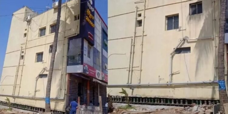 ತಮಿಳುನಾಡಿನ ಹೈಡ್ರಾಲಿಕ್ ಜಾಕ್ ಬಳಸಿ ಕಟ್ಟಡ ತಳ್ಳುವ ಪಾರಮೌಂಟ್ ಕಂಪನಿ 20 ಅಡಿಯಷ್ಟು ಕಟ್ಟಡವನ್ನು ಹಿಂದೆ ತಳ್ಳುವ ಕಾಮಗಾರಿಯನ್ನು 22 ಲಕ್ಷ ರೂ.ಗೆ ವಹಿಸಿಕೊಂಡಿದೆ. 37 ಅಡಿ ಎತ್ತರ ಹಾಗೂ 37 ಅಡಿ ಅಗಲದ ಮೂರಂತಸ್ತಿನ ಕಟ್ಟಡವನ್ನು 400ಕ್ಕೂ ಹೆಚ್ಚು ಹೈಡ್ರಾಲಿಕ್ ಜಾಕ್ ಬಳಸಿಕೊಂಡು ಹಿಂದಕ್ಕೆ ಸ್ಥಳಾಂತರಿಸುವ ಕಾಮಗಾರಿ ಭರದಿಂದ ಸಾಗಿದೆ.