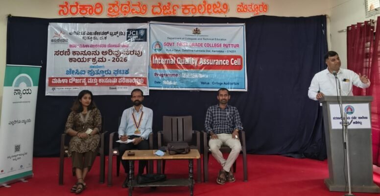 ಪುತ್ತೂರು ಅನಿಕೇತನ ಎಜುಕೇಶನಲ್ ಟ್ರಸ್ಟಿನ ಮಹಿಳಾ ಸಬಲೀಕರಣ ಯೋಜನೆಯ ಕಾನೂನು ಅರಿವು ನೆರವು 2026 ಸರಣಿ ಕಾರ್ಯಕ್ರಮದ ಅಂಗವಾಗಿ ಜೆಸಿಐ ಪುತ್ತೂರು ಘಟಕದ ಸಹಭಾಗಿತ್ವದಲ್ಲಿ ಜಿಡೆಕಲ್ಲು ಸರಕಾರಿ ಪ್ರಥಮ ದರ್ಜೆ ಕಾಲೇಜಿನಲ್ಲಿ ಆಯೋಜಿಸಲಾದ ಮಹಿಳಾ ದೌರ್ಜನ್ಯ ಮತ್ತು ಕಾನೂನು ಪರಿಹಾರ ವಿಚಾರ ಸಂಕಿರಣದಲ್ಲಿ ಸಂಪನ್ಮೂಲ ವ್ಯಕ್ತಿಯಾಗಿ ಮಾತನಾಡಿದರು.