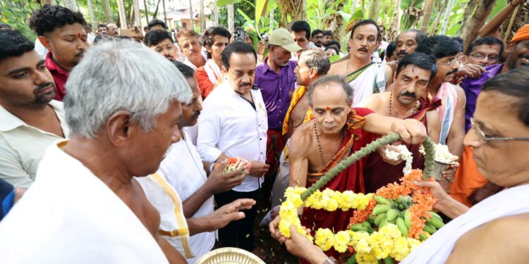 ದೇವಳದ ಸತ್ಯಧರ್ಮ ನಡೆಯಲ್ಲಿ ಪ್ರಾರ್ಥನೆ ಮಾಡಿ ಬಳಿಕ ವಾದ್ಯದೊಂದಿಗೆ ತೆರಳಿ ಗೊನೆ ಮುಹೂರ್ತ ನೆರವೇರಿಸಲಾಯಿತು.