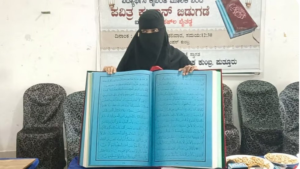 ಪುತ್ತೂರು: ಶಾಯಿಯಲ್ಲಿ ಅದ್ದುವ ಪೆನ್ ಬಳಸಿ, ಕುರ್ ಆನ್ ಬರೆದು ತಾಲ್ಲೂಕಿನ ಕುಂಬ್ರದ ಮರ್ಕಝುಲ್ ಹುದಾ ಮಹಿಳಾ ಕಾಲೇಜು ವಿದ್ಯಾರ್ಥಿನಿ ಗಮನ ಸೆಳೆದಿದ್ದಾರೆ.