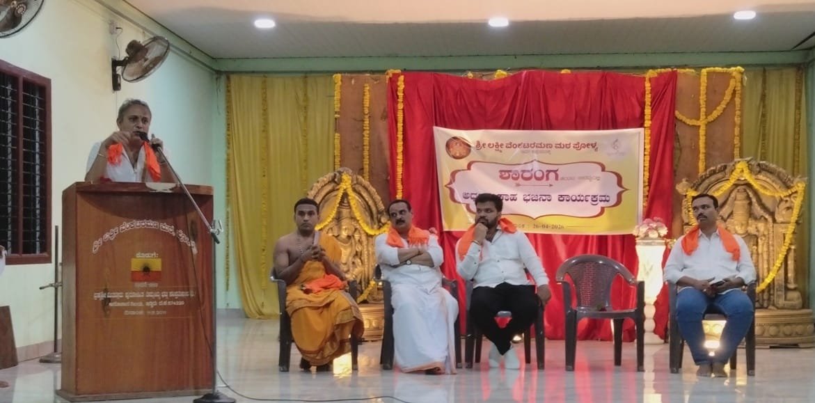 1200 ವರ್ಷಗಳ ಹಿಂದೆಯೇ ಆದಿಶಂಕರಾಚಾರ್ಯರು ಭಜಗೋವಿಂದಂ ಭಜಗೋವಿಂದ ಎಂದು ಹೇಳಿದ್ದರು. ಅಂದರೆ ಭಜನೆ ಮಾಡಿರೆಂದು ಅರ್ಥ. ಭಗವಂತ ಎಲ್ಲಿದ್ದಾನೆ ಎಂದು ನಾರದ ಋಷಿಗಳು ಭಗವಂತ ವಿಷ್ಣುವಿನಲ್ಲಿ ಕೇಳಿದಾಗ– ವೈಕುಂಠದಲ್ಲಿ ಇರದೇ ಇದ್ದರೂ, ಯೋಗಿಗಳ- ಉಪಾಸಕರ ಹೃದಯದಲ್ಲಿ ಇರದೇ ಇದ್ದರೂ, ಭಕ್ತರು ನಡೆಸುವ ಭಜನೆಯಲ್ಲಿ ಖಂಡಿತಾ ತಾನಿದ್ದೇನೆ ಎಂದು ಹೇಳಿದ್ದಾನೆ. ಹಾಗಾಗಿ ಶಾರಂಗ ತಂಡ ಇಂದು ಆಯೋಜಿಸಿದ ಅರ್ಧ ಏಕಾಹ ಭಜನೆ ಅರ್ಥಪೂರ್ಣವಾಗಿ ಮೂಡಿಬಂದಿದೆ. ಇಂತಹ ಕಾರ್ಯಕ್ಕೆ ಸದಾ ಬೆಂಬಲ ನೀಡುತ್ತೇವೆ ಎಂದರು.