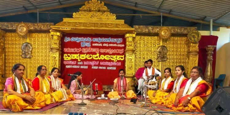 ಶ್ರೀ ವಿಷ್ಣುಮೂರ್ತಿ ಅನ್ನಪೂರ್ಣೇಶ್ವರಿ ಕ್ಷೇತ್ರ ಉದಯಗಿರಿ, ಸಂಪ್ಯದಲ್ಲಿ ನಡೆಯುವ ಬ್ರಹ್ಮಕಲಶೋತ್ಸವದ ಅಂಗವಾಗಿ ಧೀಶಕ್ತಿ ಮಹಿಳಾ ಯಕ್ಷ ಬಳಗ ಪುತ್ತೂರು ಇವರಿಂದ ಶೇಣಿ ಗೋಪಾಲಕೃಷ್ಣ ಭಟ್ ವಿರಚಿತ ” ಶ್ರೀಮತಿ ಪರಿಣಯ ” ಯಕ್ಷಗಾನ ತಾಳಮದ್ದಳೆ ನಡೆಯಿತು. ಹಿಮ್ಮೇಳದಲ್ಲಿ ಭಾಗವತರಾಗಿ ರಚನಾ ಚಿದ್ಗಲ್ ,ಮದ್ದಳೆಯಲ್ಲಿ ಶ್ರೀ ಲಕ್ಷ್ಮೀಶ ಶಗ್ರಿತ್ತಾಯ, ಚೆಂಡೆಯಲ್ಲಿ, ಮಾ ಅದ್ವೈತ ಕನ್ಯಾನ , ಚಕ್ರತಾಳದಲ್ಲಿ| ಚೈತಾಲಿ,ಕಾಂಚೋಡು ಸಹಕರಿಸಿದ್ದರು. ಮುಮ್ಮೇಳದಲ್ಲಿ, ಪದ್ಮಾ ಕೆ ಆರ್ ಆಚಾರ್ಯ (ನಾರದ),ಜಯಲಕ್ಷ್ಮಿ ವಿ ಭಟ್ ( ಅಂಬರೀಷ), ಶಾಲಿನಿ ಅರುಣ್ ಶೆಟ್ಟಿ (ಪರ್ವತ), ಶುಭಾ ಪಿ ಆಚಾರ್ಯ( ಮಹಾರಾಣಿ), ವೈಷ್ಣವಿ ಜೆ ರಾವ್ (ಮಹಾವಿಷ್ಣು),ಅಭಿಜ್ಞಾ ರಾವ್ ದಾಳಿಂಬ ಭಾಗವಹಿಸಿದ್ದರು. ದೇವಸ್ಥಾನದ ಬ್ರಹ್ಮಕಲಶೋತ್ಸವ ಸಮಿತಿಯ ರಾಧಾಕೃಷ್ಣ ಬೋರ್ಕರ್ ಕಾರ್ಯಕ್ರಮ ನಿರೂಪಿಸಿದರು. ಸಂಘದ ನಿರ್ದೇಶಕರಾದ ಪದ್ಮಾ ಕೆ ಆರ್ ಆಚಾರ್ಯ ಪಾತ್ರ ಪರಿಚಯ ಮಾಡಿ, ವಂದಿಸಿದರು.