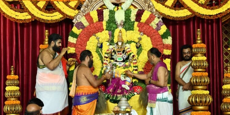 ಚಿತ್ರಾಪುರ ಮಠದ ಶ್ರೀ ವಿದ್ಯೇಂದ್ರ ತೀರ್ಥ ಶ್ರೀಪಾದರು ಆಶೀರ್ವಚನ ನೀಡಿ ಧರ್ಮಾಚರಣೆಯನ್ನು ನಡೆಸಿದಾಗ ಜೀವನದಲ್ಲಿ ಮಂಗಳ ಪ್ರಾಪ್ತಿಯಾಗುತ್ತದೆ. ಸಂಸ್ಕೃತಿಯ ಆಚರಣೆಗಳು ನಡೆದಾಗ ಯುವ ಪೀಳಿಯನ್ನು ತಿಳಿಸುವ ಕಾರ್ರವಾಗಬೇಕು. ಸಜ್ಜನರಿಗೆ ರಕ್ಷಣೆ ಸಿಗದಿದ್ದಾಗ ಧರ್ಮ ರಕ್ಷಣೆಯ ನಿಟ್ಟಿನಲ್ಲಿ ಭಗವಂತನ ಆಗಮನವಾಗುತ್ತದೆ. ಕಲ್ಯೋಣೋತ್ಸವದ ಮೂಲಕ ಸಮಸ್ತ ಹಿಂದೂ ಸಮಾಜದ ಕಲ್ಯಾಣ ಆಗಲಿದೆ ಎಂದರು.