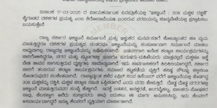 ಮಾ. 17 2025 ರ ವಿಜಯಕರ್ನಾಟಕ ದಿನಪತ್ರಿಕೆಯಲ್ಲಿ “ಭಿಕ್ಷಾಟನೆ : 306 ಮಕ್ಕಳ ರಕ್ಷಣೆ” ಕೈಗೂಡದ ದಶಕಗಳ ಪ್ರಯತ್ನ ಎಂಬ ಶಿರೋನಾಮೆಯಡಿ ಬಂದಿರುವ ವರದಿಯನ್ನು ಶೂನ್ಯವೇಳೆಯಲ್ಲಿ ಪ್ರಸ್ತಾಪಿಸಿ, ಈ ವರದಿಯ ಪ್ರಕಾರ ಕಳೆದ ಏಪ್ರಿಲ್ ನಿಂದ ಡಿಸೆಂಬರ್ ತಿಂಗಳ (2024 25ರ ತನಕ 206 ಮಕ್ಕಳನ್ನು ಮಹಿಳಾ ಮತ್ತು ಮಕ್ಕಳ ಕಲ್ಯಾಣ ಇಲಾಖೆಗೆ ಒಪ್ಪಿಸಲಾಗಿದೆ. ಆದರೆ ಇಂದು ನಗರ ಹಾಗು ಪಟ್ಟಣ ಪ್ರದೇಶಗಳ ಪ್ರಮುಖ ರಸ್ತೆಗಳ ಇಕ್ಕೆಲಗಳಲ್ಲಿ ಬಾಲ ಭಿಕ್ಷುಕರ ಸಂಖೆಯು ಹೆಚ್ಚಾಗಿದ್ದು ರಸ್ತೆಯ ಅಪಘಾತ ಹಾಗು ಕಳ್ಳತನಕ್ಕೂ (ಸರಗಳ್ಳರು)ಇದು ದಾರಿಯನ್ನು ಒದಗಿಸುತ್ತಿದೆಯೆಂಬುವುದನ್ನು ಈ ವೇಳೆಯಲ್ಲಿ ಗಮನ ಸೆಳೆಯಲು ಬಯುಸುತ್ತೇನೆ. ರಾಜ್ಯವು ಭಿಕ್ಷಾಟನೆ ಮುಕ್ತ ಎನ್ನುವ ಹಣೆಪಟ್ಟಿಕಟ್ಟಿದ್ದರೂ, ಕಣ್ಣಿದ್ದು ಕಾಣದ ಕುರುಡರಂತೆ ವರ್ತಿಸುವುದು ಎಷ್ಟು ಸರಿ. ಕಲ್ಯಾಣ ಯೋಜನೆಯ ಪ್ರಮುಖ ಉದ್ದೇಶವೇ ಸಮಾಜದ ಅತ್ಯಂತ ನಿರ್ಗತಿಕರಿಗೆ ಕನಿಷ್ಠ ಸೌಲಭ್ಯವನ್ನು ಒದಗಿಸುವುದಾಗಿದೆ. ಹಾಗಿದ್ದರೆ ದಿನೇ ದಿನೇ ಹೆಚ್ಚುತಿರುವ ಬಾಲ ಭಿಕ್ಷುಕರ ಸಂಖೇಗೆ ಯಾರು ಹೊಣೆ? ರಾಜ್ಯದ ಕಲ್ಯಾಣಕ್ಕಾಗಿ ಪ್ರತಿ ವರ್ಷ ಲಕ್ಷಾಂತರ ಹಣವನ್ನು ಸರಕಾರವು ವ್ಯಯಿಸುತ್ತಿದೆಯಾದರೂ ಸರಕಾರ ಜನ ಸಾಮಾನ್ಯರಿಗೆ ಅಗತ್ಯ ಸೌಲಭ್ಯವನ್ನು ಒದಗಿಸುವಲ್ಲಿ ಸೋತಿದೆ ಎನ್ನುವುದು ನಗರದಲ್ಲಿ ಹೆಚ್ಚುತ್ತಿರುವ ಭಿಕ್ಷಾಟಕರನ್ನು ಕಂಡಾಗ ಮೇಲ್ನೋಟಕ್ಕೆ ಎದ್ದು ಕಾಣುತ್ತಿದೆ.