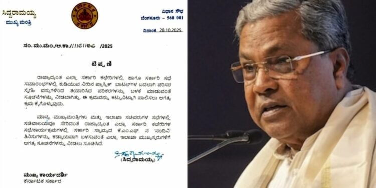 ರಾಜ್ಯದ್ಯಂತ ಸರ್ಕಾರಿ ಕಚೇರಿಗಳಲ್ಲಿ ಮತ್ತು ಸಭೆ ಸಮಾರಂಭಗಳಲ್ಲಿ ಪ್ಲಾಸ್ಟಿಕ್ ಬಾಟಲ್ ನಿಷೇಧಿಸಿ (Plastic Ban) ಮತ್ತು ಸಭೆ ಸಮಾರಂಭಗಳಲ್ಲಿ ಕೆಎಂಎಫ್ ನಂದಿನಿ ತಿನಿಸುಗಳನ್ನು ಬಳಸುವಂತೆ ಸಿದ್ದರಾಮಯ್ಯ ಸರ್ಕಾರ ಕಟ್ಟುನಿಟ್ಟಿನ ಆದೇಶ ಹೊರಡಿಸಿದೆ.