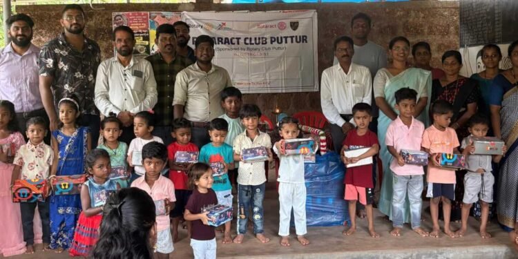 ಪುತ್ತೂರು: ರೋಟರಿ ಕ್ಲಬ್ ಪುತ್ತೂರು ಹಾಗೂ ರೋಟರ್ಯಾಕ್ಟ್ ಕ್ಲಬ್ ಪುತ್ತೂರು ಆಶ್ರಯದಲ್ಲಿ ಮಂಜಲ್ಪಡ್ಪು ಹಾಗೂ ಸಿಟಿಗುಡ್ಡೆ ಅಂಗನವಾಡಿ ಪುಟಾಣಿಗಳಿಗೆ ಮೇ 16ರಂದು ಪಾದರಕ್ಷೆ ವಿತರಿಸಲಾಯಿತು.