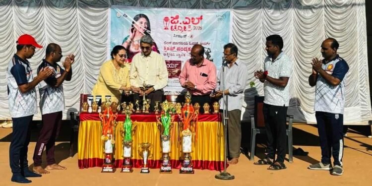 ಪುತ್ತೂರು: ಪುತ್ತೂರಿನ ಮುಖ್ಯರಸ್ತೆಯಲ್ಲಿರುವ ಪ್ರತಿಷ್ಟಿತ ಚಿನ್ನಾಭರಣಗಳ ಮಳಿಗೆ ಜಿ.ಎಲ್. ಆಚಾರ್ಯ ಜ್ಯುವೆಲ್ಲರ್ಸ್ ವತಿಯಿಂದ ಸಂಸ್ಥೆಯ ಸಿಬ್ಬಂದಿಗಳಿಗೆ ಲೀಗ್ ಮಾದರಿಯ ಓವರ್ ಆರ್ಮ್ ಕ್ರಿಕೆಟ್ ಪಂದ್ಯಾಟ ಜ.19 ರಂದು ಕೊಂಬೆಟ್ಟು ತಾಲೂಕು ಕ್ರೀಡಾಂಗಣದಲ್ಲಿ ನಡೆಯಿತು.