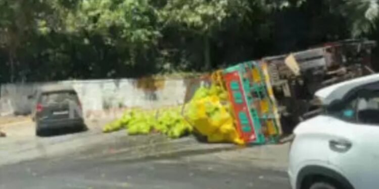 ಅಗುಂಬೆಯಿಂದ ಉಡುಪಿ ಕಡೆಗೆ ಇಳಿಯುತ್ತಿದ್ದಾಗ ಏಕಾಏಕಿ ಲಾರಿ ಮಗುಚಿ ಬಿದ್ದಿದೆ. ಲಾರಿಯಲ್ಲಿ ತುಂಬಿದ್ದ ಕಲ್ಲಂಗಡಿ ಚೀಲಗಳು ರಸ್ತೆಗೆ ಉರುಳಿವೆ.