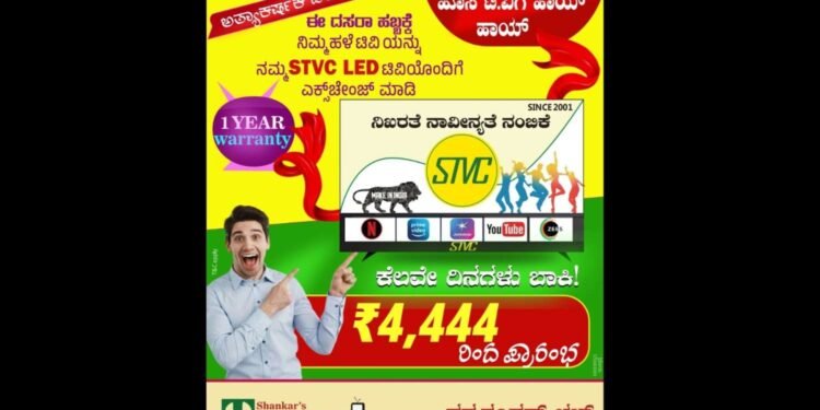 ಪುತ್ತೂರಿನಲ್ಲೇ ತಯಾರಾದ ಪುತ್ತೂರಿನ ಬ್ರಾಂಡ್ ಆಗಿರುವ STVC (ಶಂಕರ್ಸ್ ಟಿವಿ ಕ್ಲಿನಿಕ್)ನಲ್ಲಿ ಟಿವಿ ಖರೀದಿಗೆ ಆಕರ್ಷಕ ಕೊಡುಗೆಯನ್ನು ಗ್ರಾಹಕರ ಮುಂದಿಡಲಾಗಿದೆ.