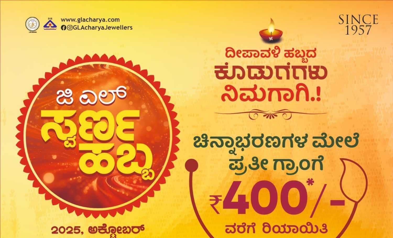 ದೀಪಾವಳಿ ಬೆಳಕಿನ ಹಬ್ಬವಾಗಿದ್ದರೂ, ಈ ಬಾರಿಯು ಜಿಎಲ್ ಆಚಾರ್ಯ ಜ್ಯುವೆಲ್ಲರ್ಸ್ ನೀಡಿರುವ ಆಫರ್ಗಳಿಂದ ಪುತ್ತೂರಿನ ಗ್ರಾಹಕರಿಗೆ ನಿಜವಾದ ಸ್ವರ್ಣ ಹಬ್ಬದ ಸಂಭ್ರಮವನ್ನು ತಂದಿದೆ.