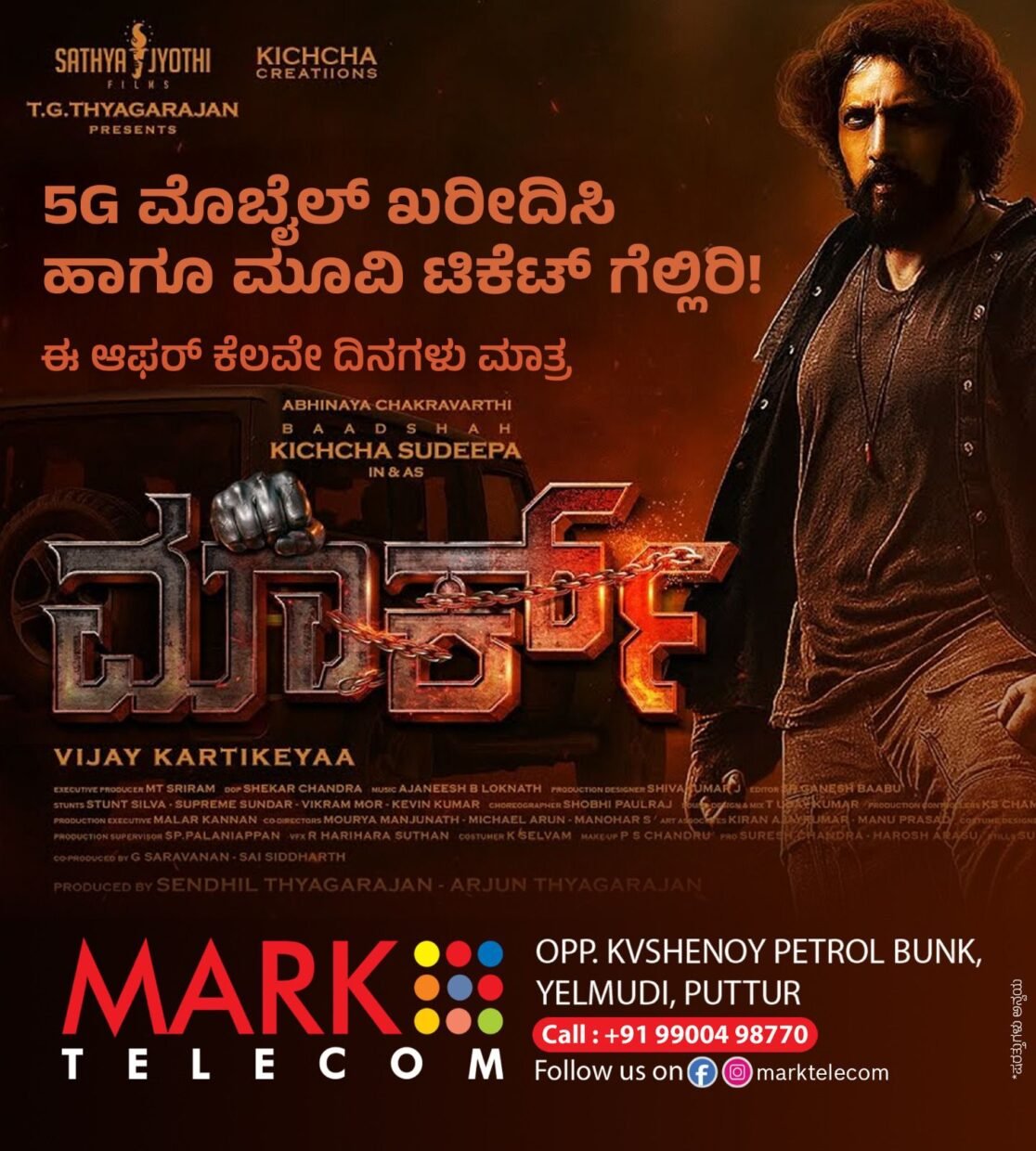 ಇಲ್ಲಿ 5ಜಿ ಮೊಬೈಲನ್ನು ಖರೀದಿ ಮಾಡಿದರೆ ಮಾರ್ಕ್ ಸಿನಿಮಾದ ಟಿಕೇಟನ್ನು ಉಚಿತವಾಗಿ ಪಡೆದುಕೊಳ್ಳಬಹುದು. ಈ ಆಫರ್ ಕೆಲವೇ ದಿನಗಳು ಮಾತ್ರ ಇರಲಿದೆ ಎಂದು ಪ್ರಕಟಣೆ ತಿಳಿಸಿದೆ.